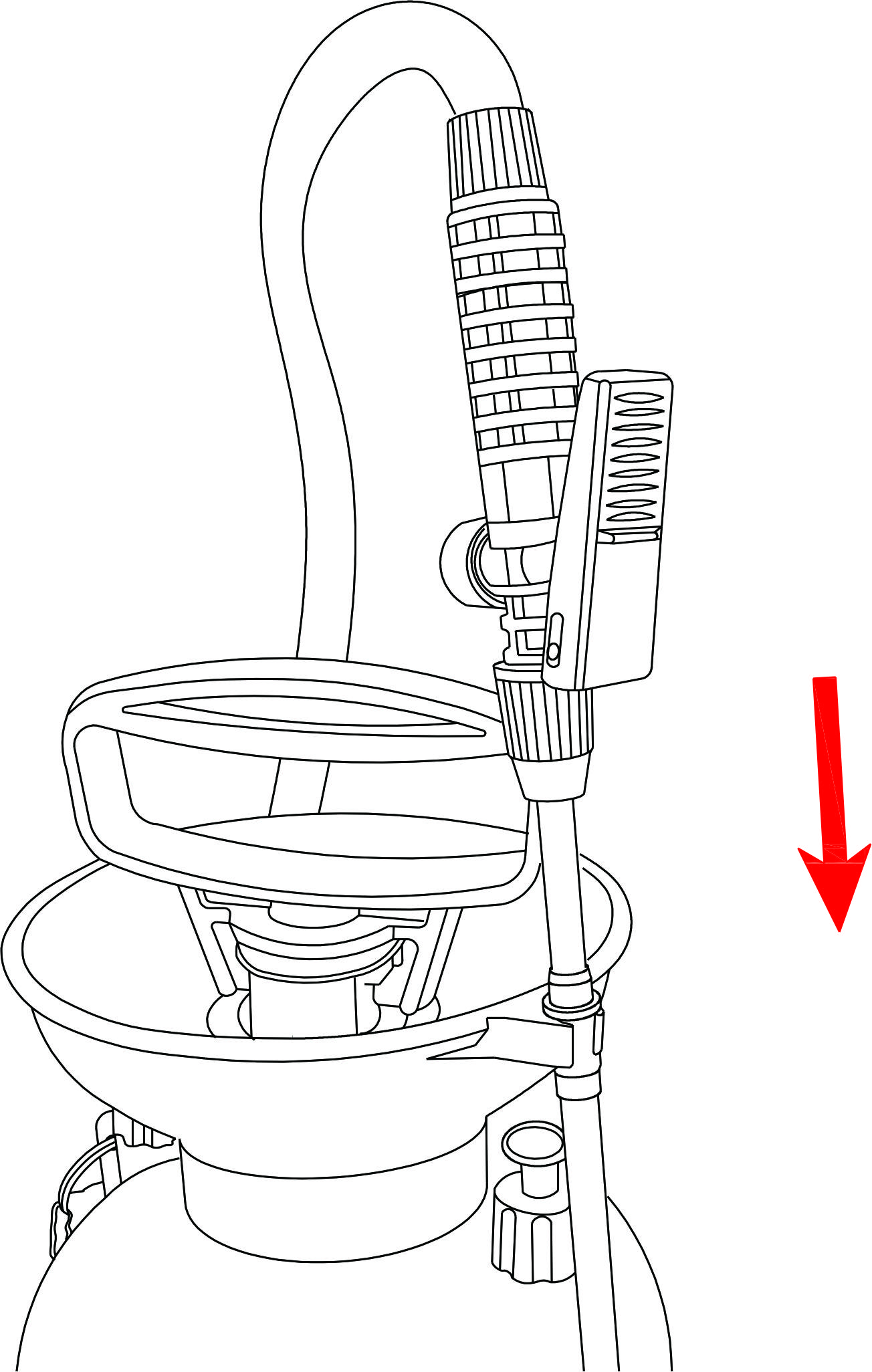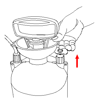 Nota: La presión residual se mantendrá en el tanque incluso al finalizar la pulverización gracias a la válvula reguladora. Libere la presión antes de retirar la bomba siguiendo las instrucciones (como se indican en la válvula de alivio).