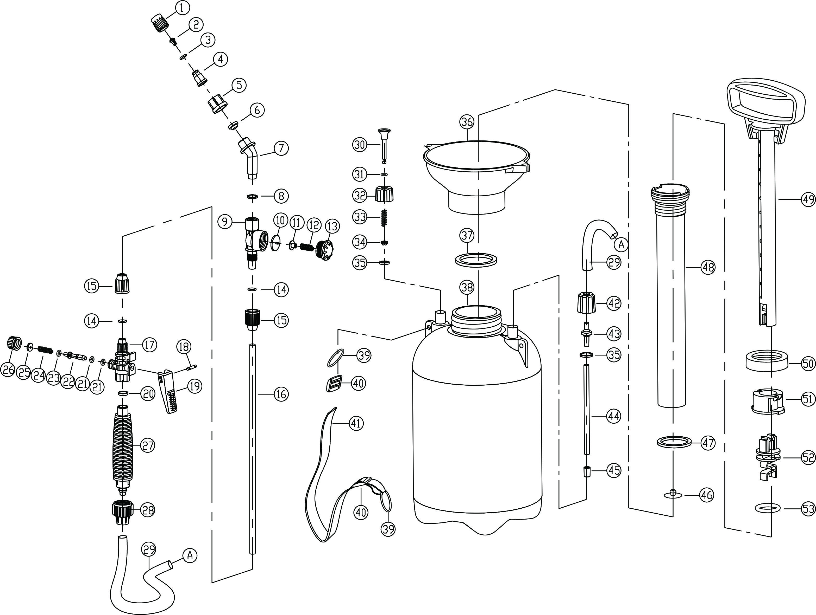 15 | tapa de lanza pulverizadora | 2 | 42 | Tapa de manguera II | 1 |